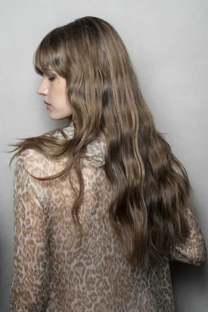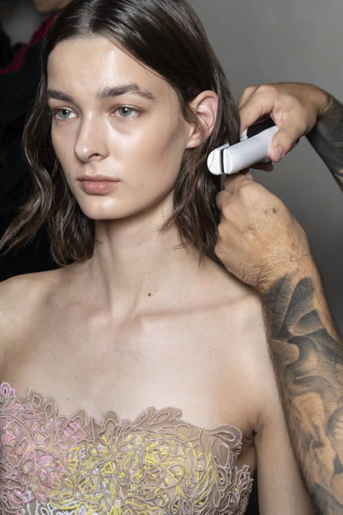 «Mi sono ispirato a una donna eterea con un look super naturale, rispettando la sua identità e la naturalezza del capello. L’utilizzo dei prodotti è stato fondamentale: dovevano essere leggeri e delicati. Le texture, evidenti ma senza dover essere lucide.» Celebrity Hairstylist Pierpaolo Lai.