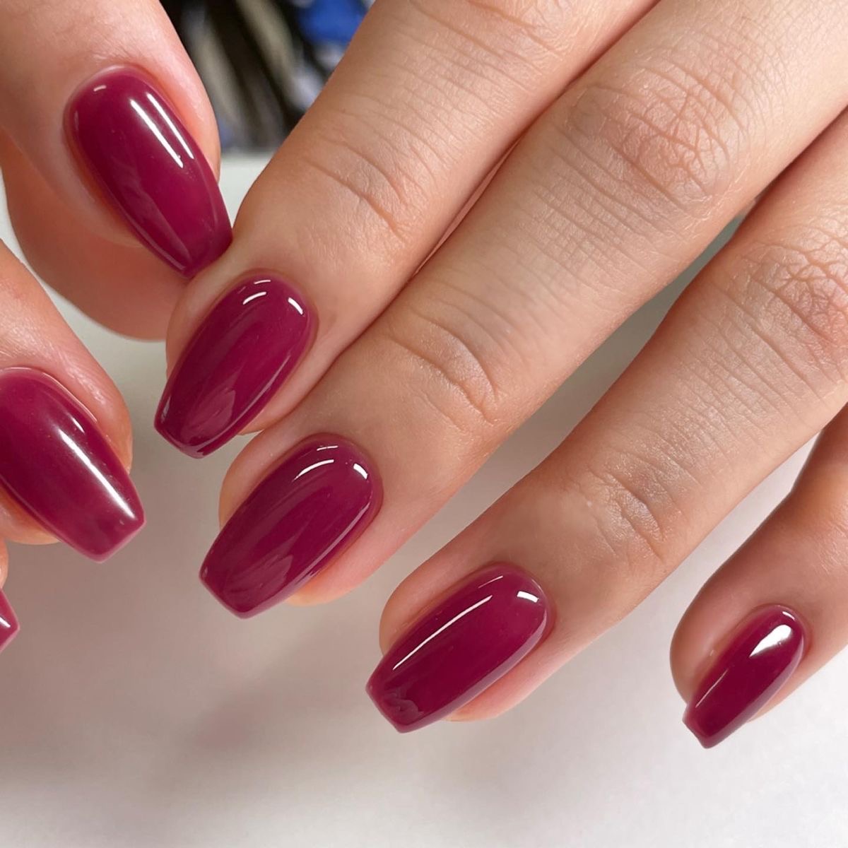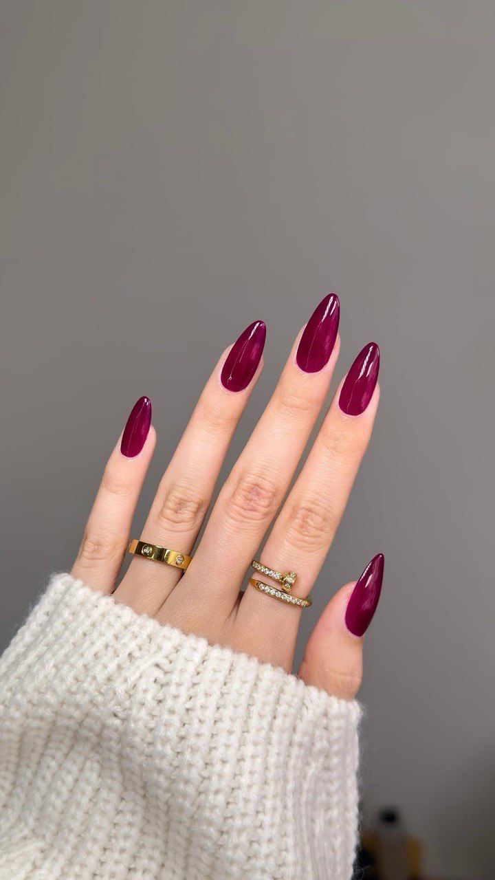 La forma ideale per le unghie amarena è la mandorla o la sq-ovale (una via di mezzo tra quadrata e ovale), perché slanciano le dita e creano un effetto elegante. Le unghie mandorla sono perfette per mani corte, mentre le sq-ovali si adattano a un look più allungato.